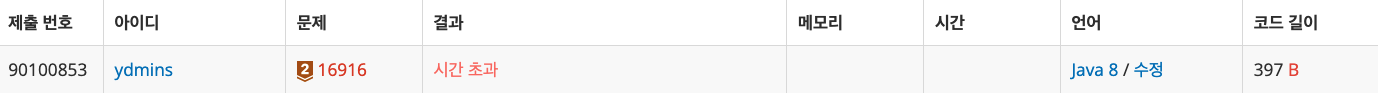 하지만 결과는 시간초과이다.