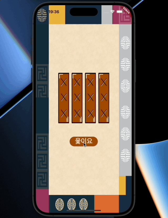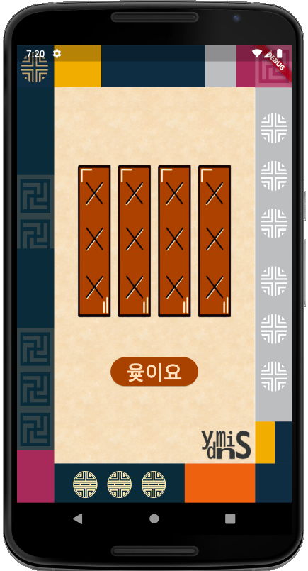 1. 이미지가 윷을 던질때마다 다르기 때문에 실제 윷을 던지는 효과를 줄 수 있다. (이런 효과는 실제 앱 사용에 긍정적 영향을 미칠 것으로 보인다.)